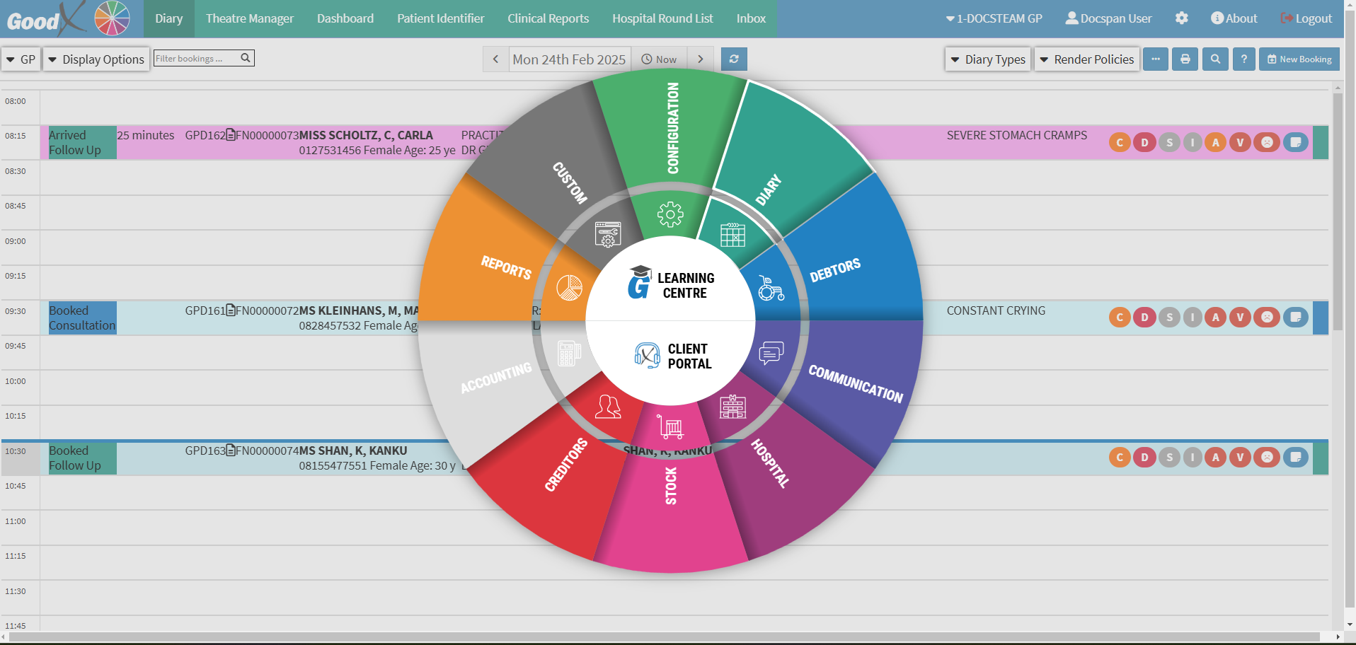 💡Please Note: This is the default set-up of the segment and the Navigation Bar items can be customised to the needs and preferences of the Practice. For more information regarding the customisation of the segment please refer to the user manuals: General Settings and Navigation (Wheel) Settings.