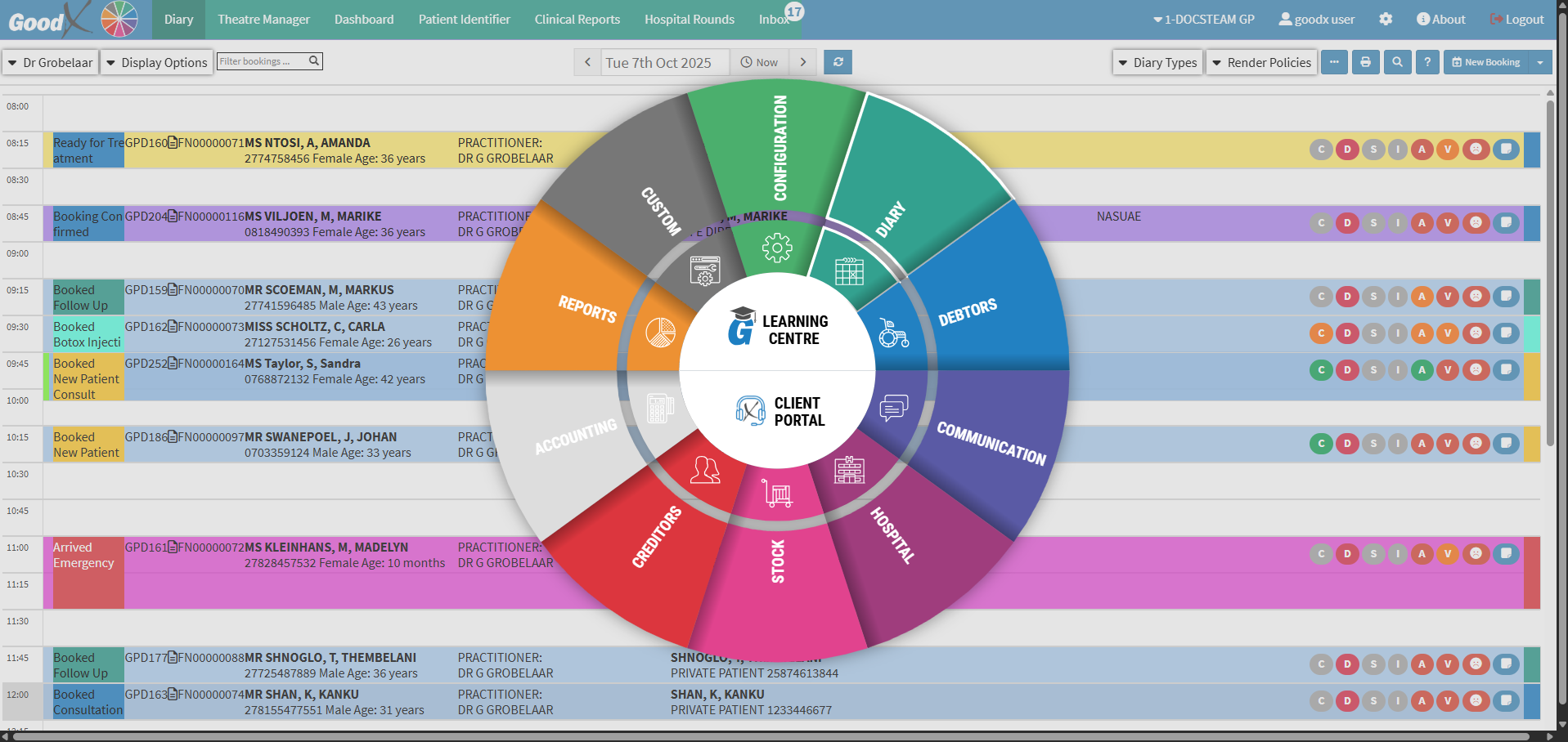 💡Please Note: This is the default set-up of the segment and the Navigation Bar items can be customised to the needs and preferences of the Practice. For more information regarding the customisation of the segment, please refer to the user manuals: General Settings and Navigation (Wheel) Settings.