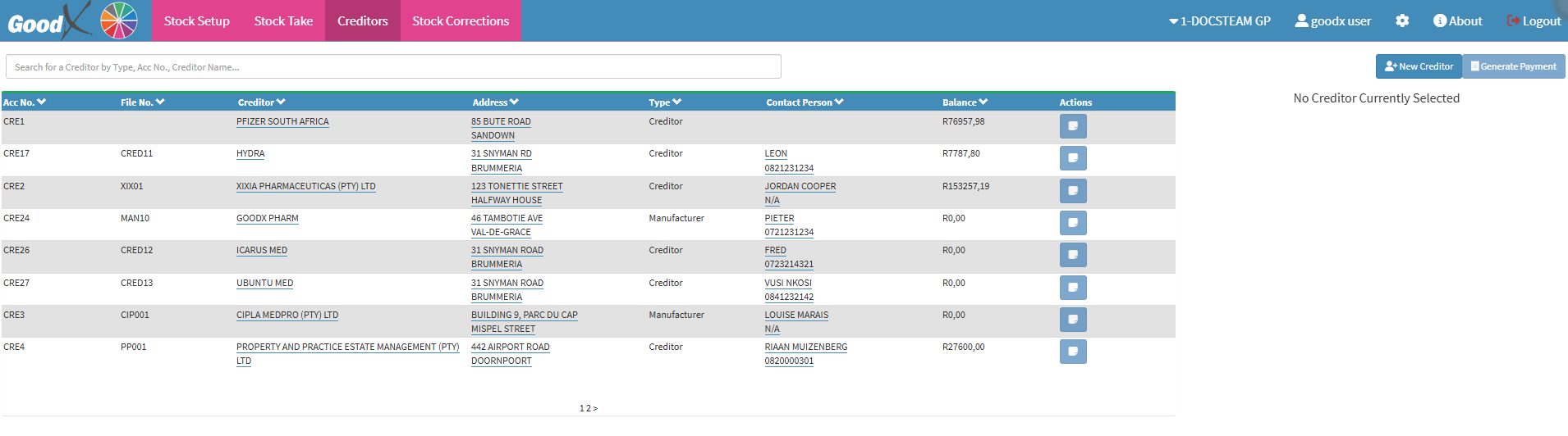 The Creditors screen allows quick access to all supplier information in one place, making it easier to manage accounts, track balances, and maintain accurate records for efficient financial control.