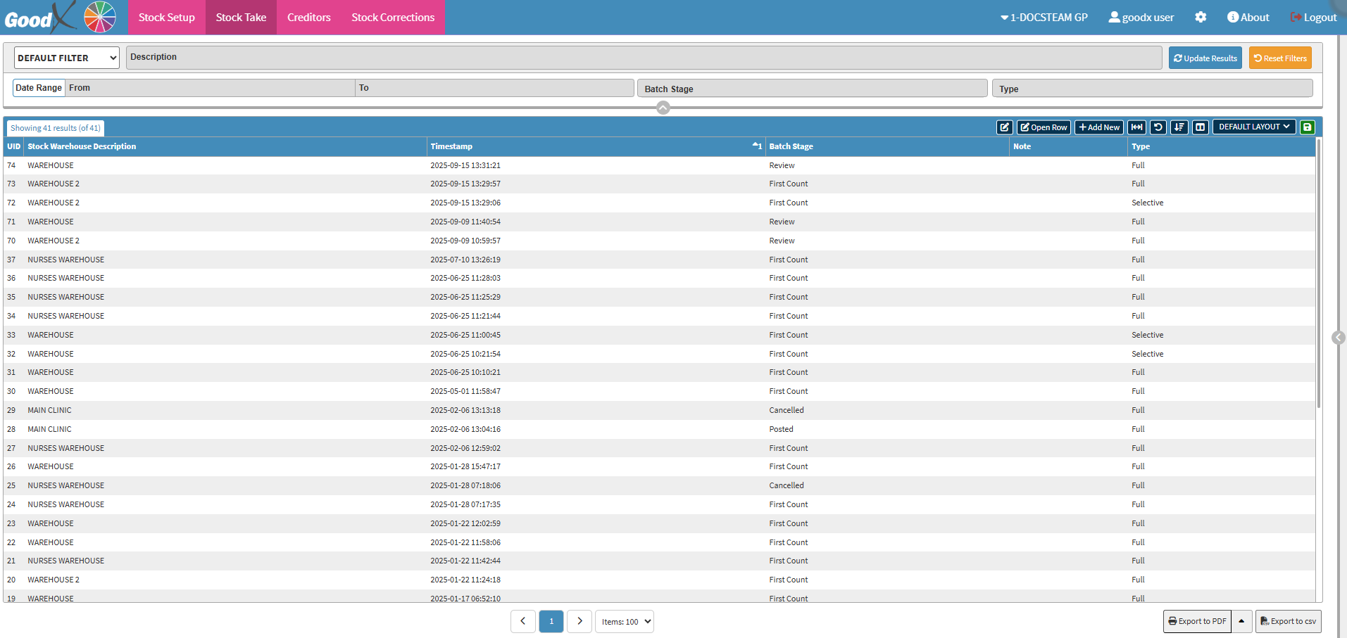 • The Stock Take screen will open.