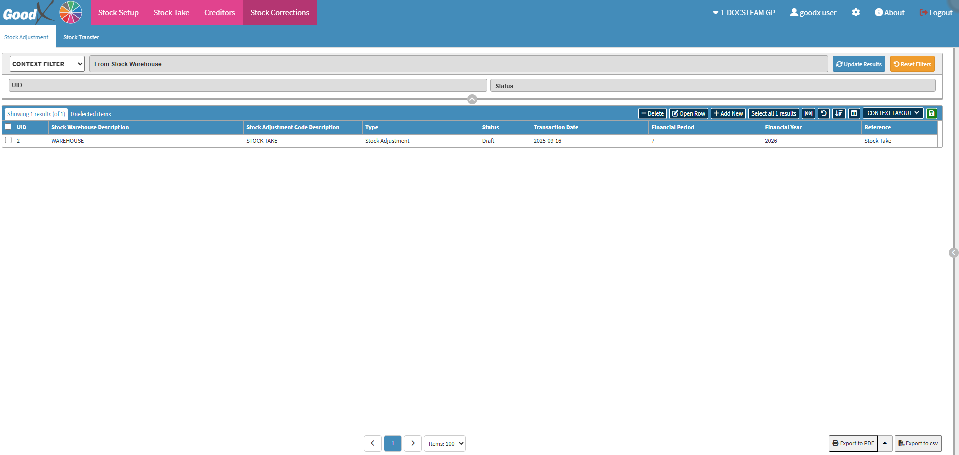• Click on the Stock Take tab.