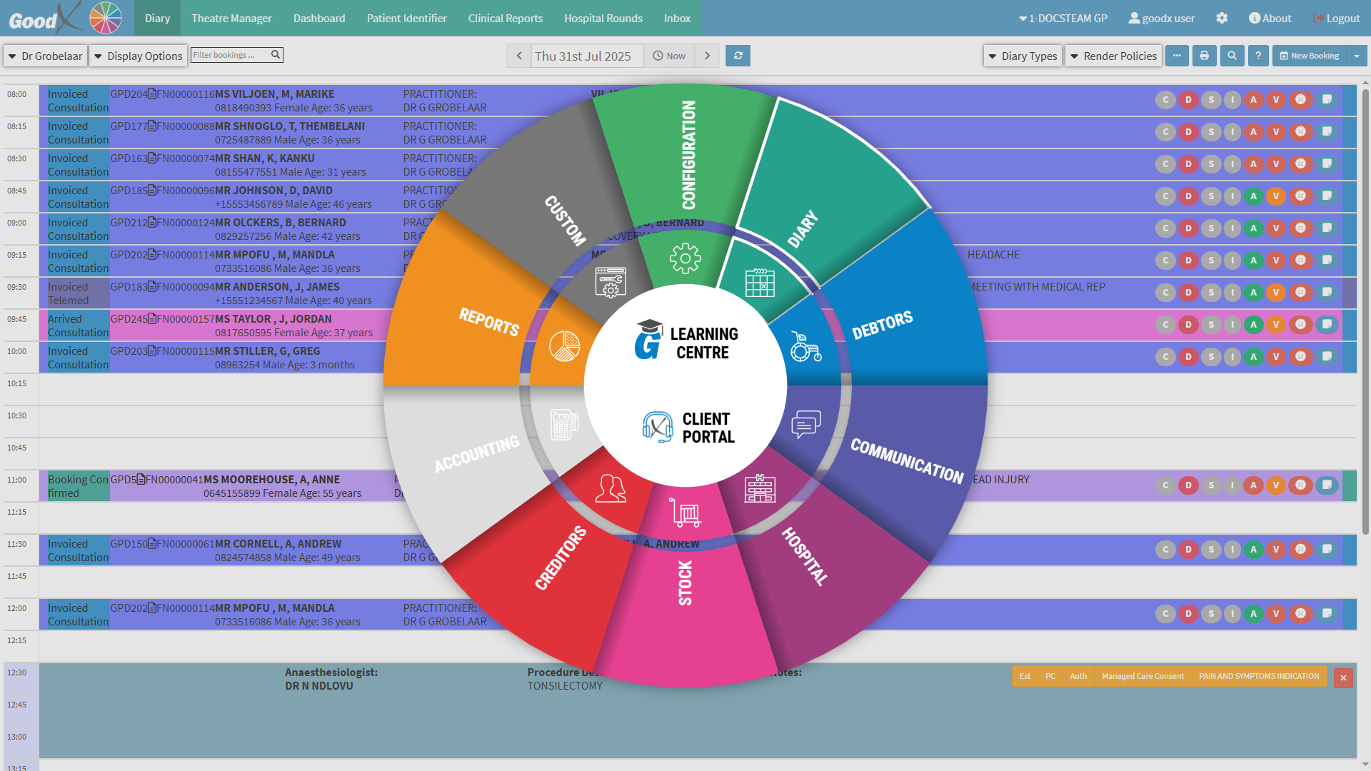 💡Please Note: This is the default set-up of the segment and the Navigation Bar items can be customised to the needs and preferences of the Practice. For more information regarding the customisation of the segment, please refer to the user manuals: General Settings and Navigation (Wheel) Settings.
