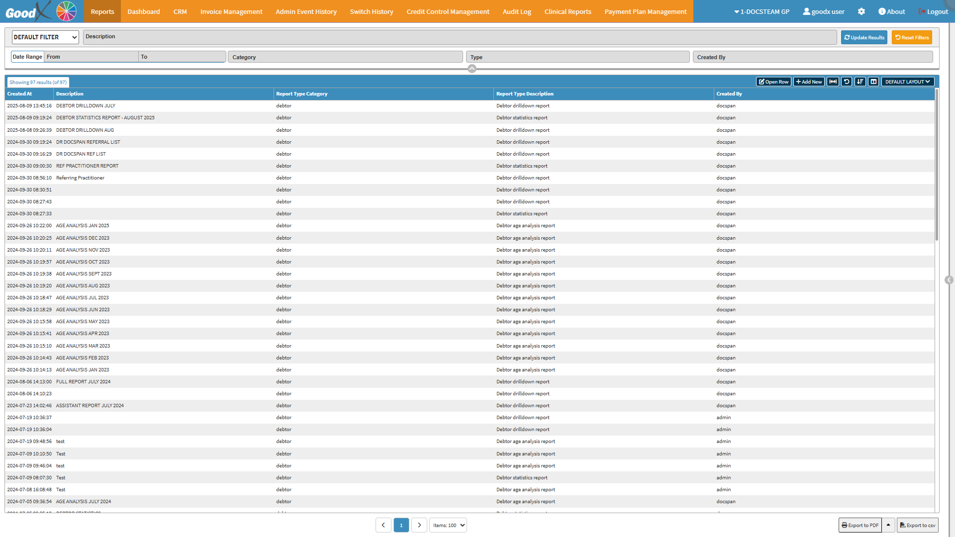 The Reports Segment provides the Practice instant access to the financial, administrative, and clinical data needed for daily operations. Staff can track Patient and Debtor activity, monitor outstanding accounts, review billing history, and analyse trends that affect financial stability. By consolidating multiple report types such as Debtor Drilldowns, Age Analyses, Referral Lists, and Audit Logs, the Reports segment helps identify risks, keep ahead of Payment Plan management, improve cash flow, and maintain compliance with internal policies and healthcare regulations. This centralised reporting function strengthens decision-making, enhances accountability, and streamlines administrative work, enabling the Practice to operate more efficiently every day.