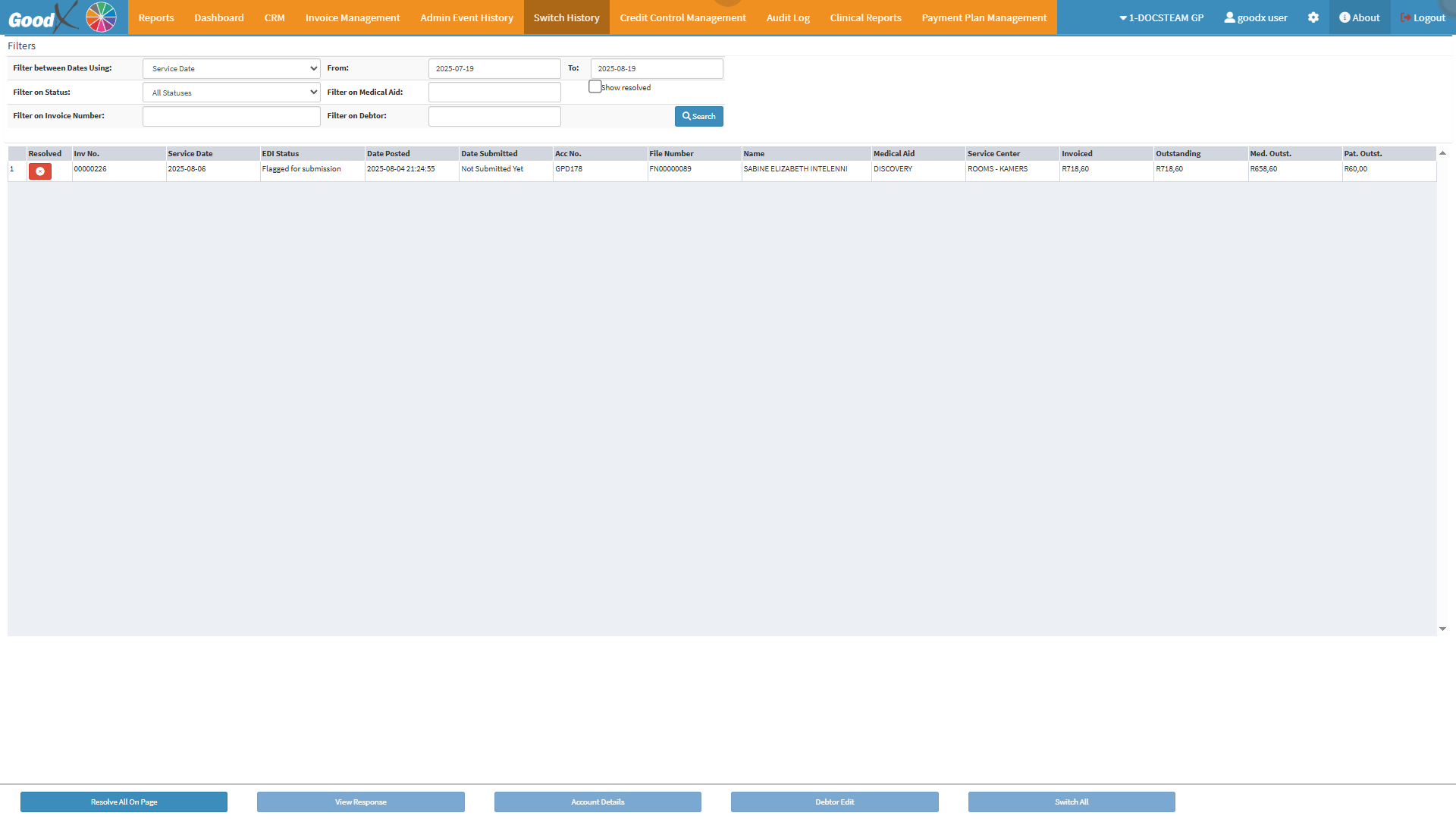 - For more information regarding the Switch History screen, please refer to the user manual: https://learning.goodx.co.za/mod/page/view.php?id=7343.
