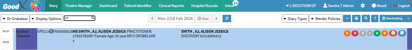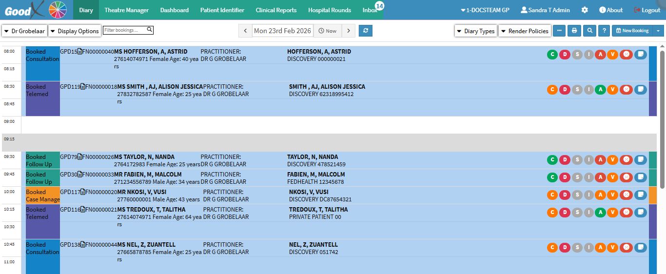 The filter assists in organising per user the diary per booking, and will indicate all the bookings that were made that were selected. This filter is per the specific day that is chosen.