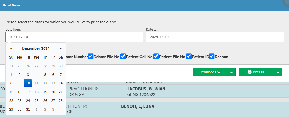 Click on the Download CSV button to download the Diary in a CSV format.