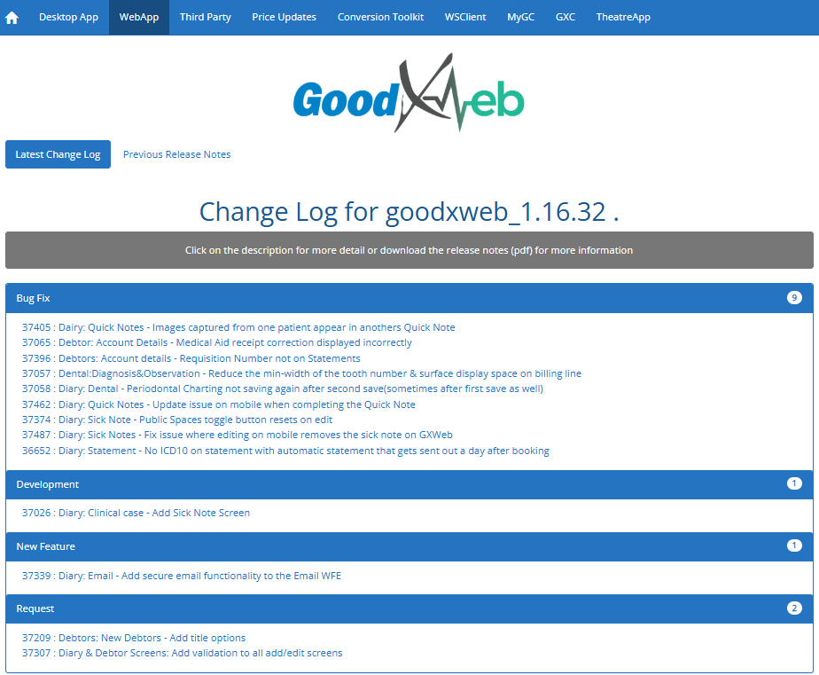 Shows the latest Pricelists and Tariff versions that are loaded for your Practice.