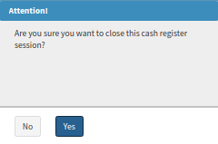 - An Attention! pop-up will appear asking you if you are sure you want to close this cash register session?.
