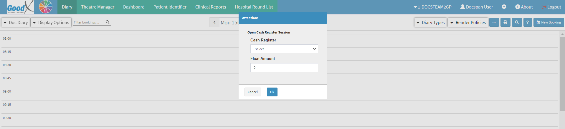 Please Note: In order for the Practice to utilise and use the Cash Register, the Cash Register first needs to be set up, and if not done correctly, the Cash Register will not work in the system.