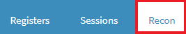 - The Recon screen will open, indicating all the Reconciliation that has been done on the Cash Register.