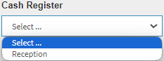 - Click on the Cash Register drop-down menu to Select the Cash Register set up for the Practice.