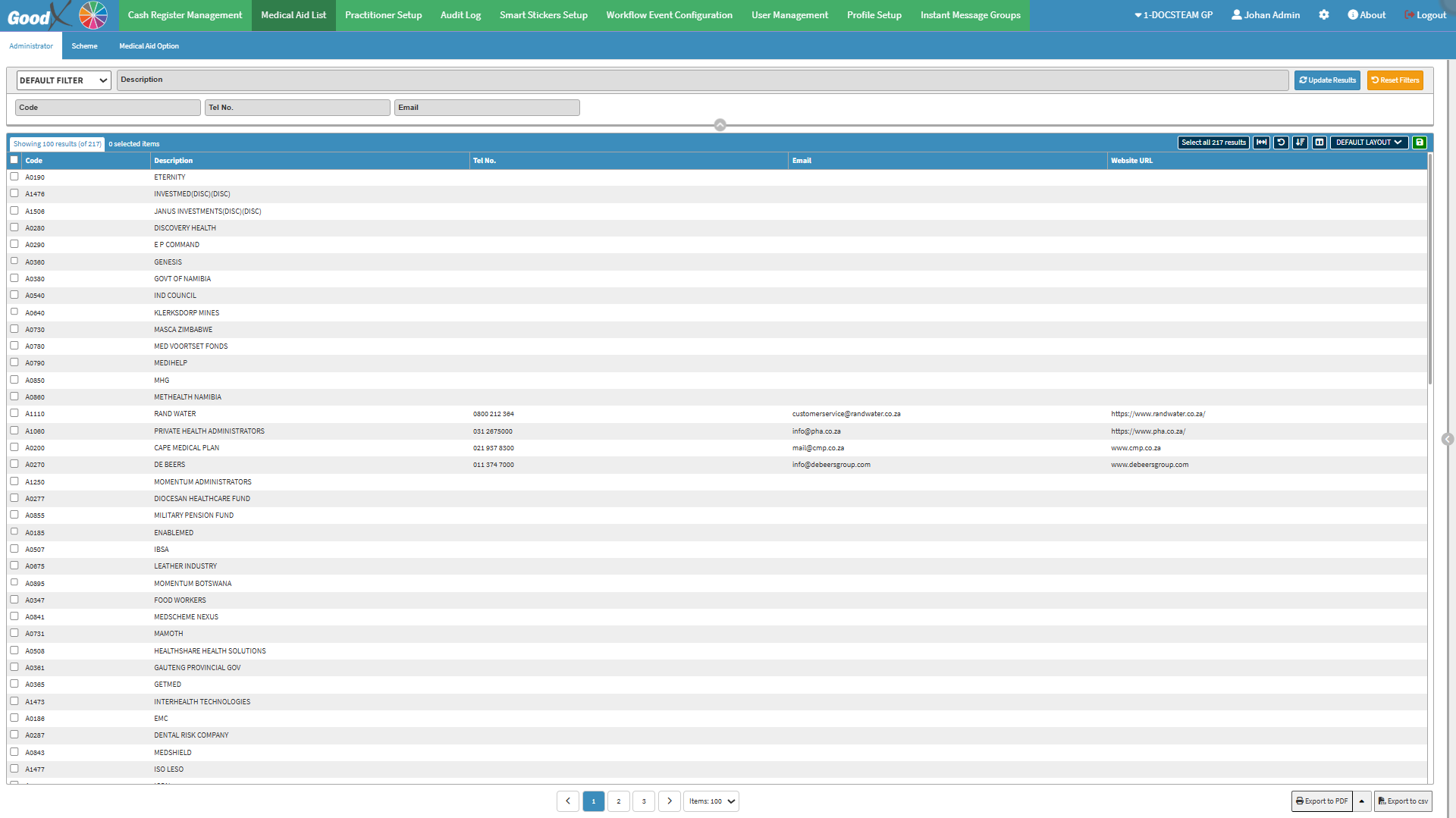• This user manual will start on the Medical Aid List screen, Administrator tab.