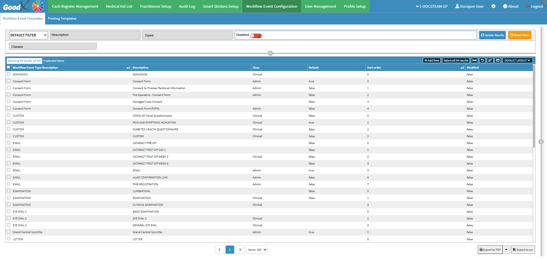 The Configuration of Workflow Events and Templates involves setting up, customising, and managing automated actions and standardised content within the Practice. You are able to set up your pre-designed templates or communication actions that suit the needs of your specific Practice, that are easily accessible.