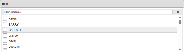 - Click on the User field to enter the name of the User or select the User from the options that become available when you start typing.