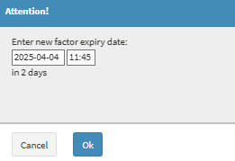 - An Attention pop-up where you can set the date and time the User will expire.