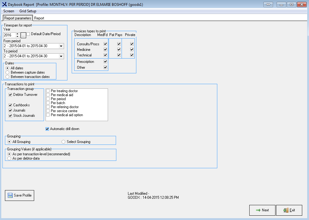 - All Grouping: All the Transactions in the selected criteria range.
