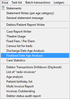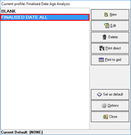 • Click on the Finalised Date Age Analysis that the user would like to print.