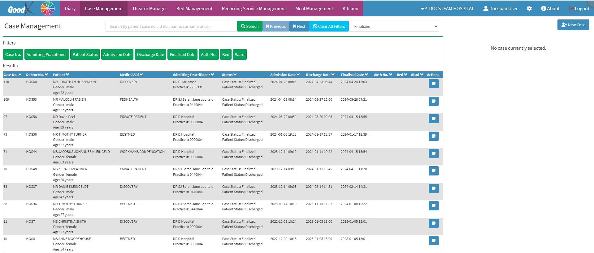- This user manual will start on the Case Management screen.