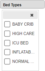 - Click on the Bed Types drop-down menu to select the desired Type of Bed by which the list will be filtered.