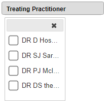 - Click on the Treating Practitioners drop-down menu to select the desired Treating Practitioner by which the list will be filtered.