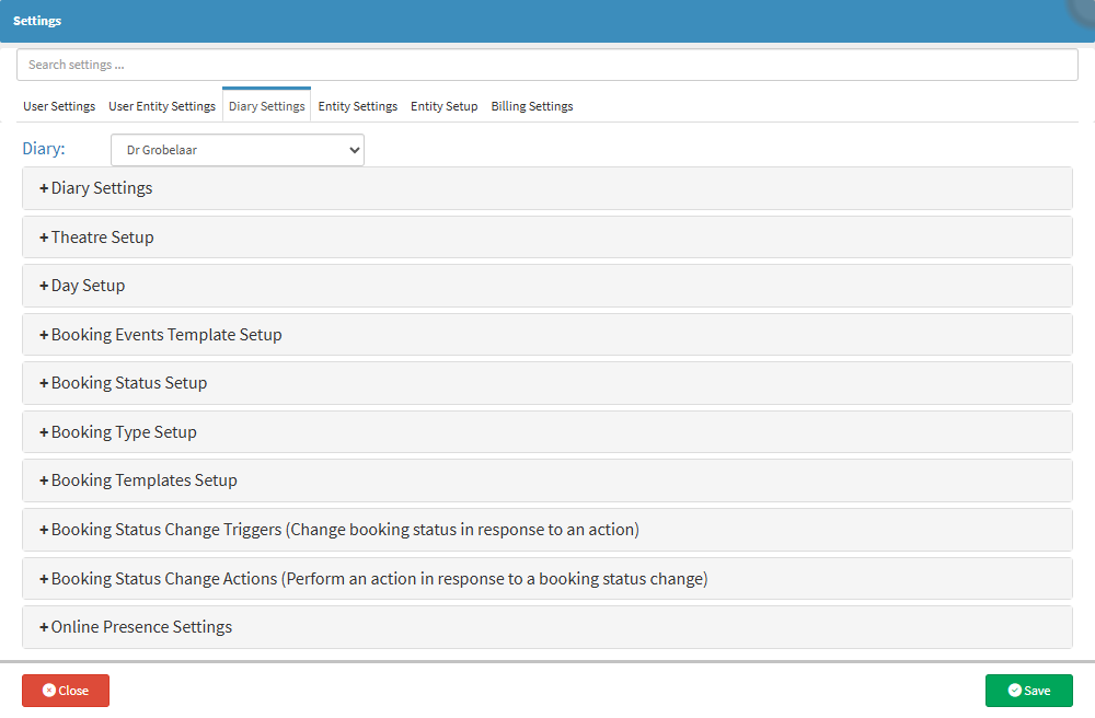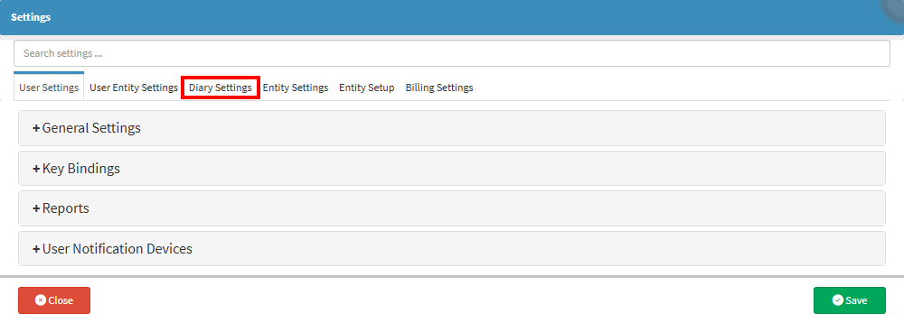 • Click on the Diary Settings tab.