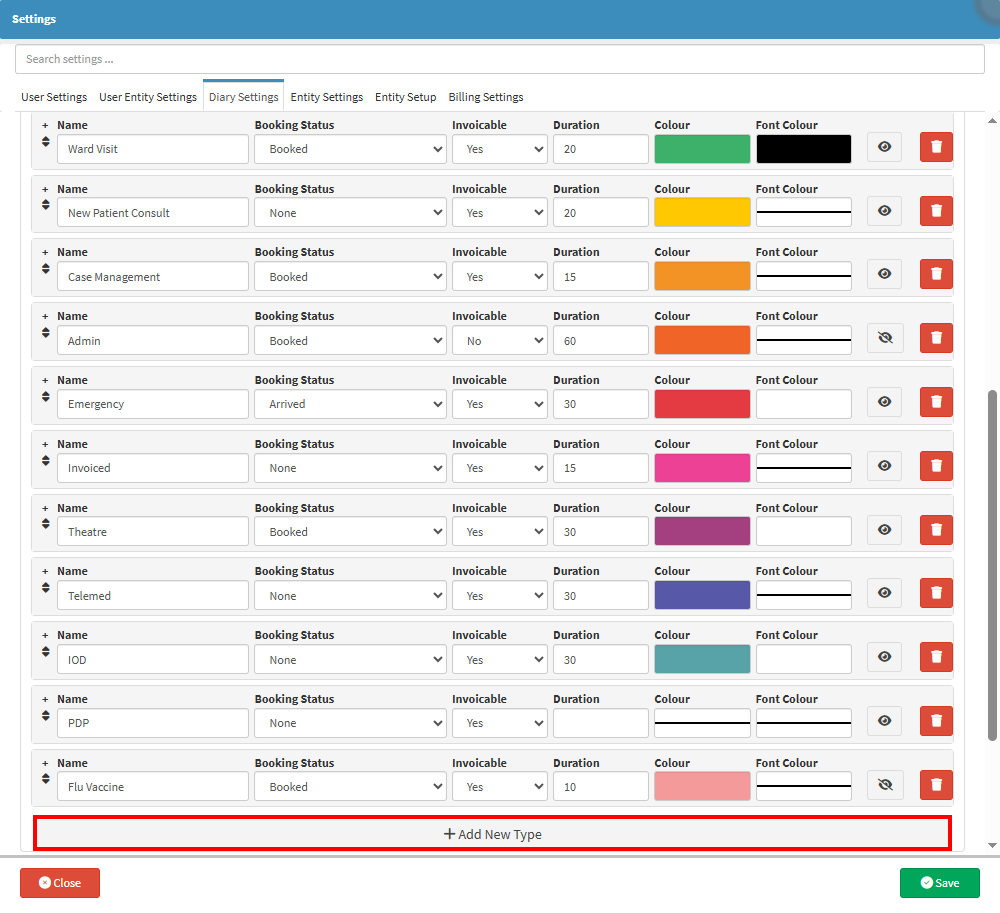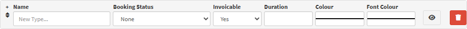 • A new Booking Type will be available to edit.