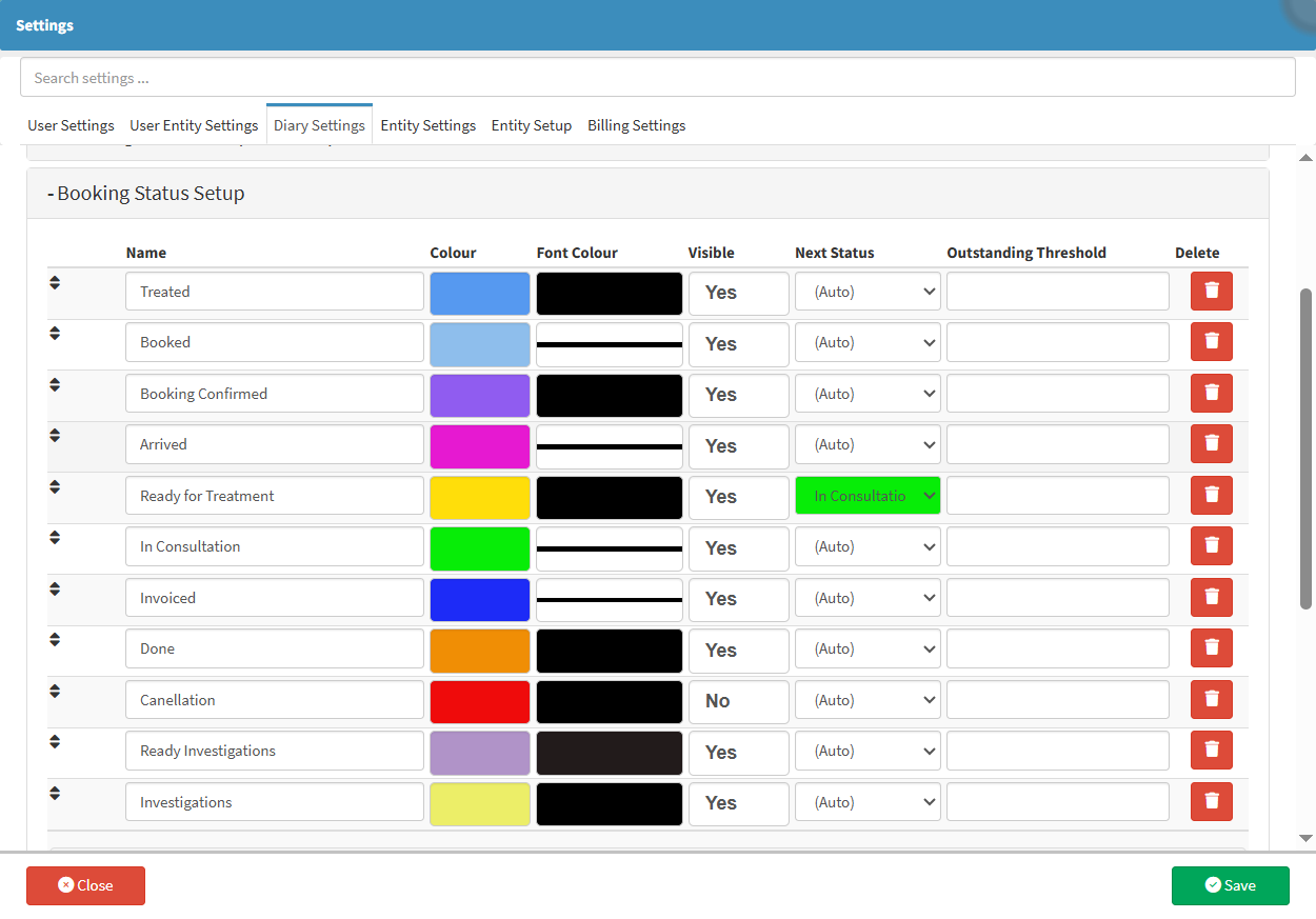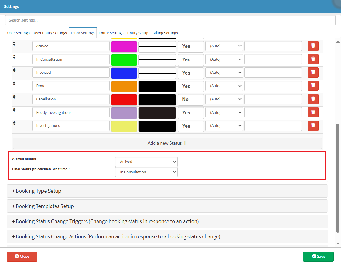 • Click on the Booking Status Setup panel to expand.