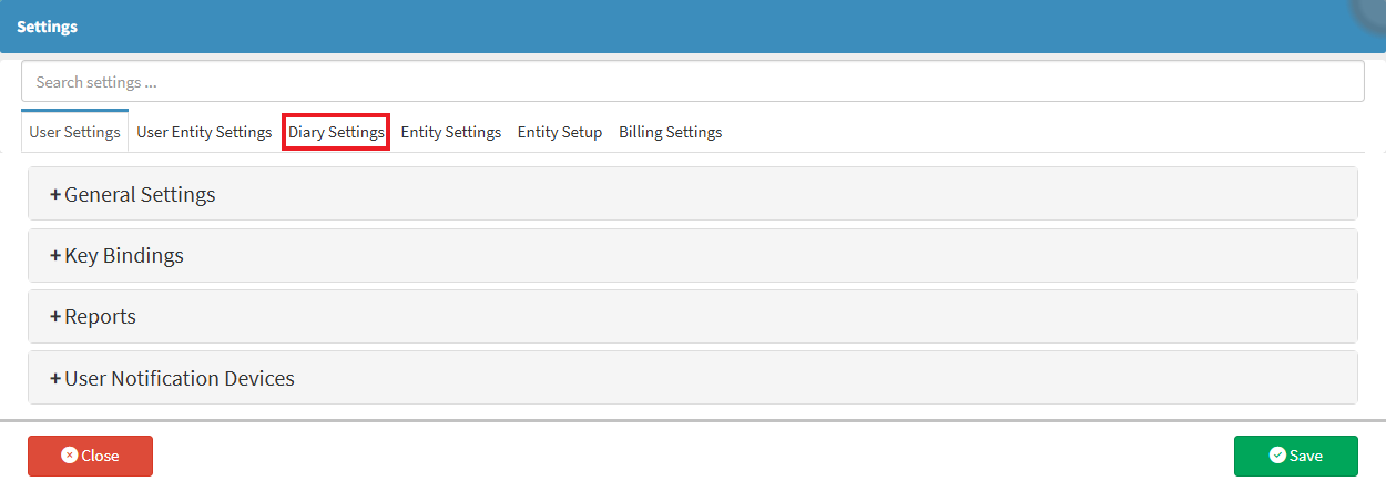• Click on the Diary Settings tab.