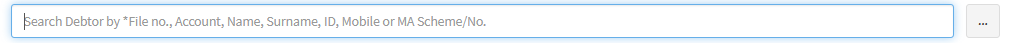 The Search Function on the Debtors screen allows you to quickly locate specific Debtor records by entering relevant search criteria such as File Number, Account Name, Surname, ID Number, Mobile Number, or Medical Aid Scheme Number. This feature streamlines the process of managing Debtor information by enabling efficient access to targeted records without requiring manual browsing through the entire Debtor List.