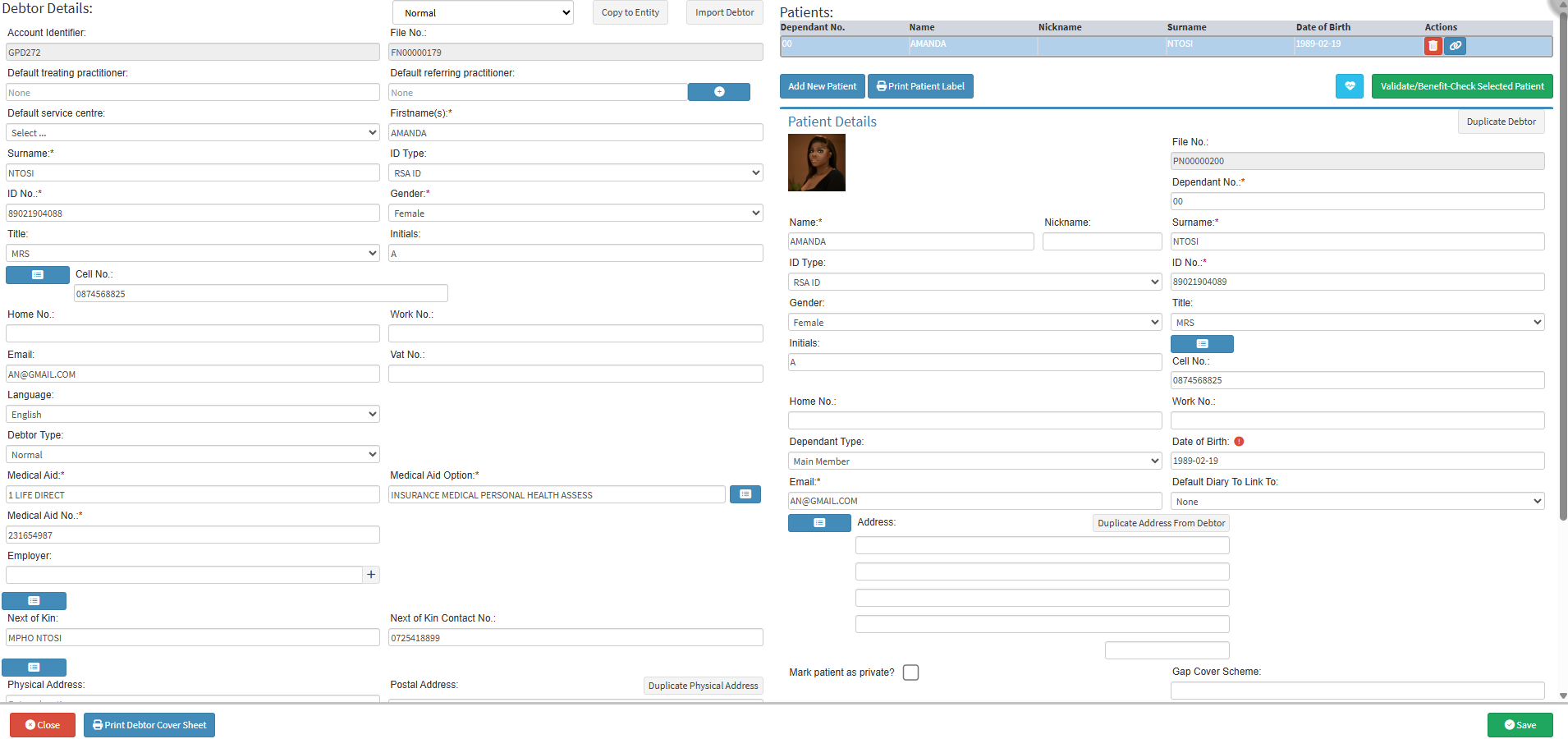 - For more information on how to navigate to the Debtor Details screen, please refer to the user manual: View or Update Debtor and Patient Information.