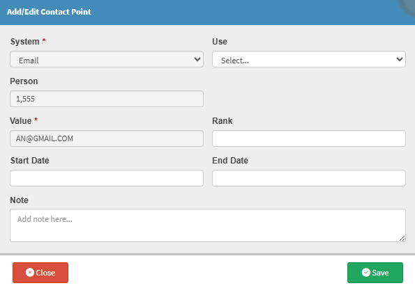 - Use: Describes the purpose of the Contact Point, such as Home, Work, Billing, or Emergency.