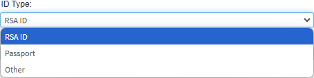 ?Please Note: Ensure that if a Passport Number or Identification Number other than an RSA ID number is used, the Date of Birth field will need to be filled in manually.