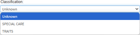 • Click on the Classification drop-down menu to select an appropriate option.