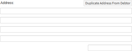 • Click on the Duplicate Address From Debtor button to copy the information over from the Debtor's Physical Address fields.