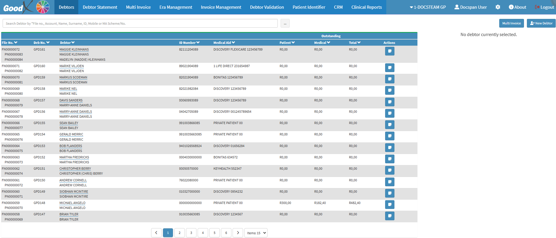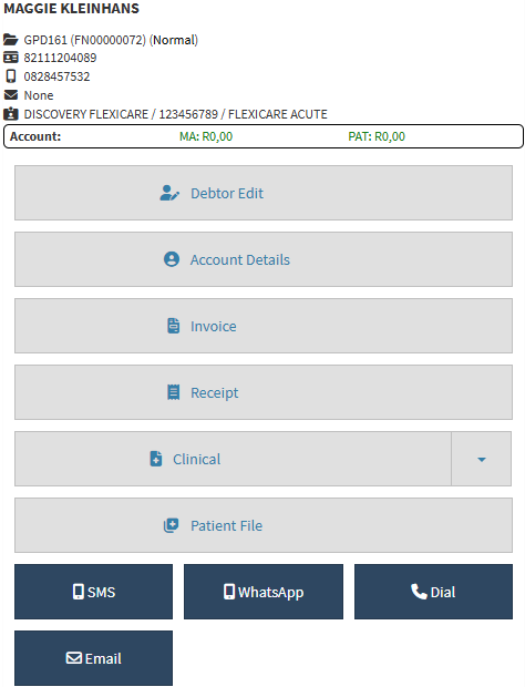 ?Please Note: The Patients' information can be imported from the Medical Aid if they are a member. To see how to import a Patient, please refer to the user manual: Patient Validation, Dependant Data, New Debtor Import and Benefit Check.