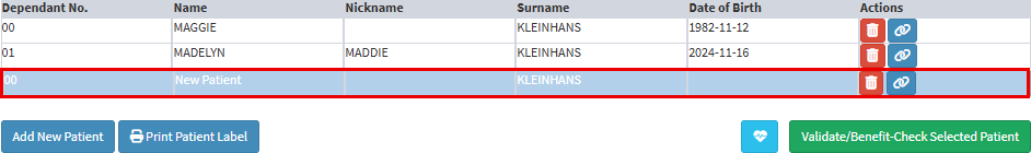 • Click on the Validate/Benefit-Check Selected Patient button to validate the Patient's information with the Medical Aid.