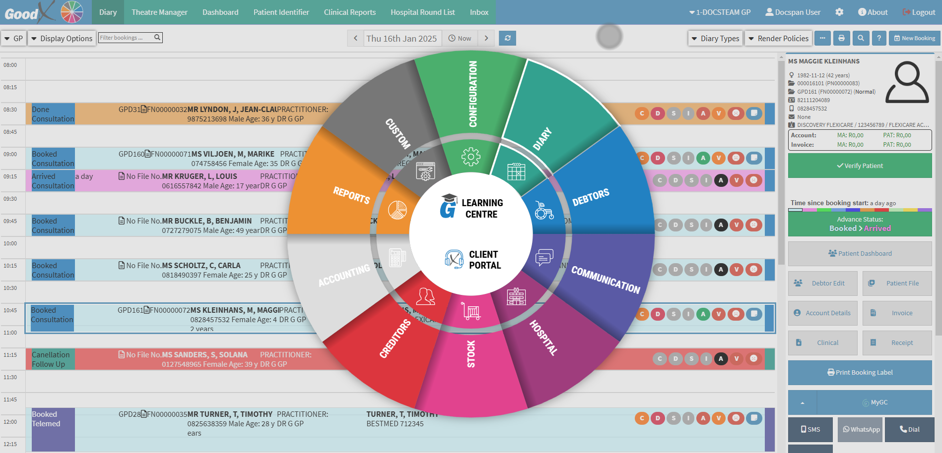 • The options available will be dependent on the setup of the Practice.