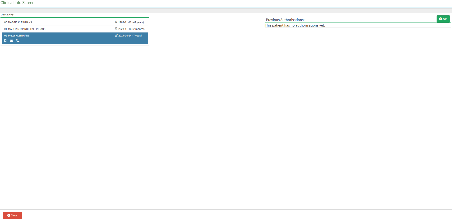 • For an extensive explanation of how to set up Authorisation for a Patient, please refer to the user manual: Authorisation Setup.