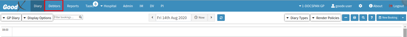 - On the Diary Menu-bar, click on the 'Debtors' tab