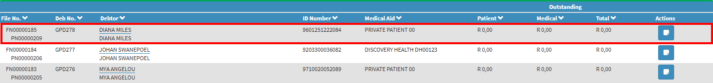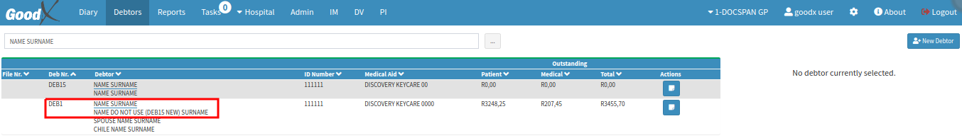 - Click on the desired Debtor.