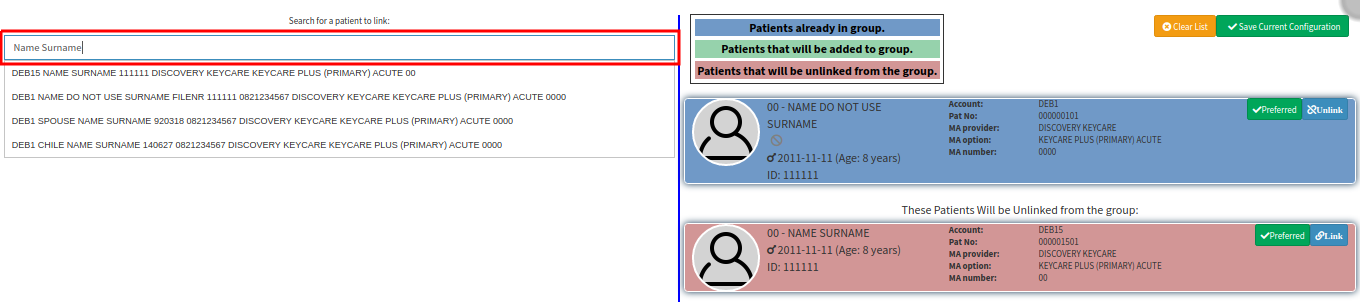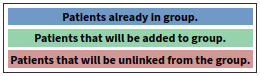 - Patients that will be unlinked from the group: this is the patient that will be unlinked from the group after the data were linked.