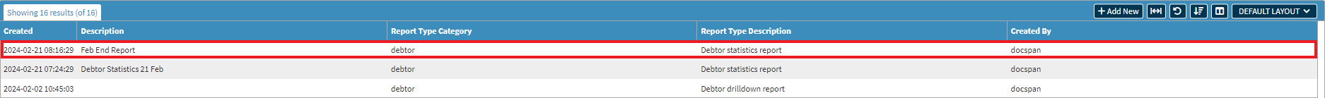 The Report will appear on the Report List screen.