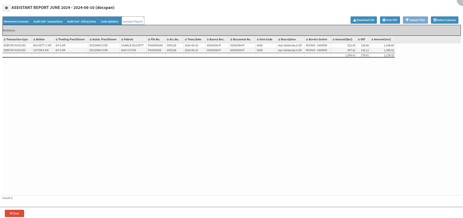 - Generate a Debtor Drilldown Report for the period that you want to see your Assistants' data.