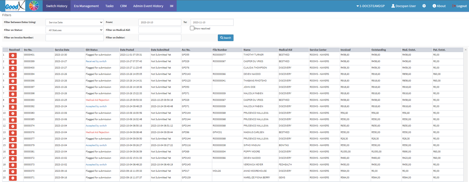 - Click on the Active Patients slider to indicate all Active or Inactive Patients.