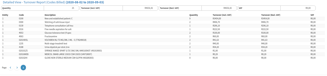 Turnover Report Codes Billed: This Report provides a monthly analysis of the number of different Codes billed by the Practice.