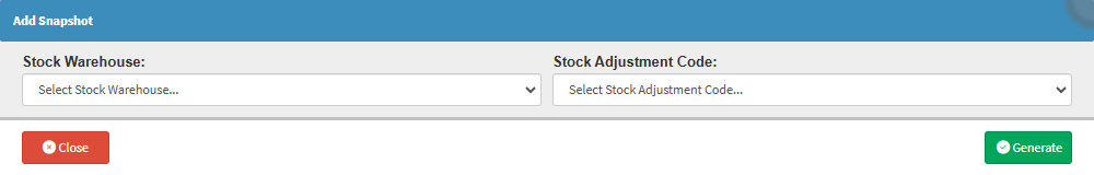 - Click on the Stock Warehouse drop-down menu to select the Warehouse that you want to take a Snapshot of.