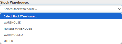 💡Please Note: The options available on the drop-down menu, are subject to the warehouses that have been set up at your Practice.