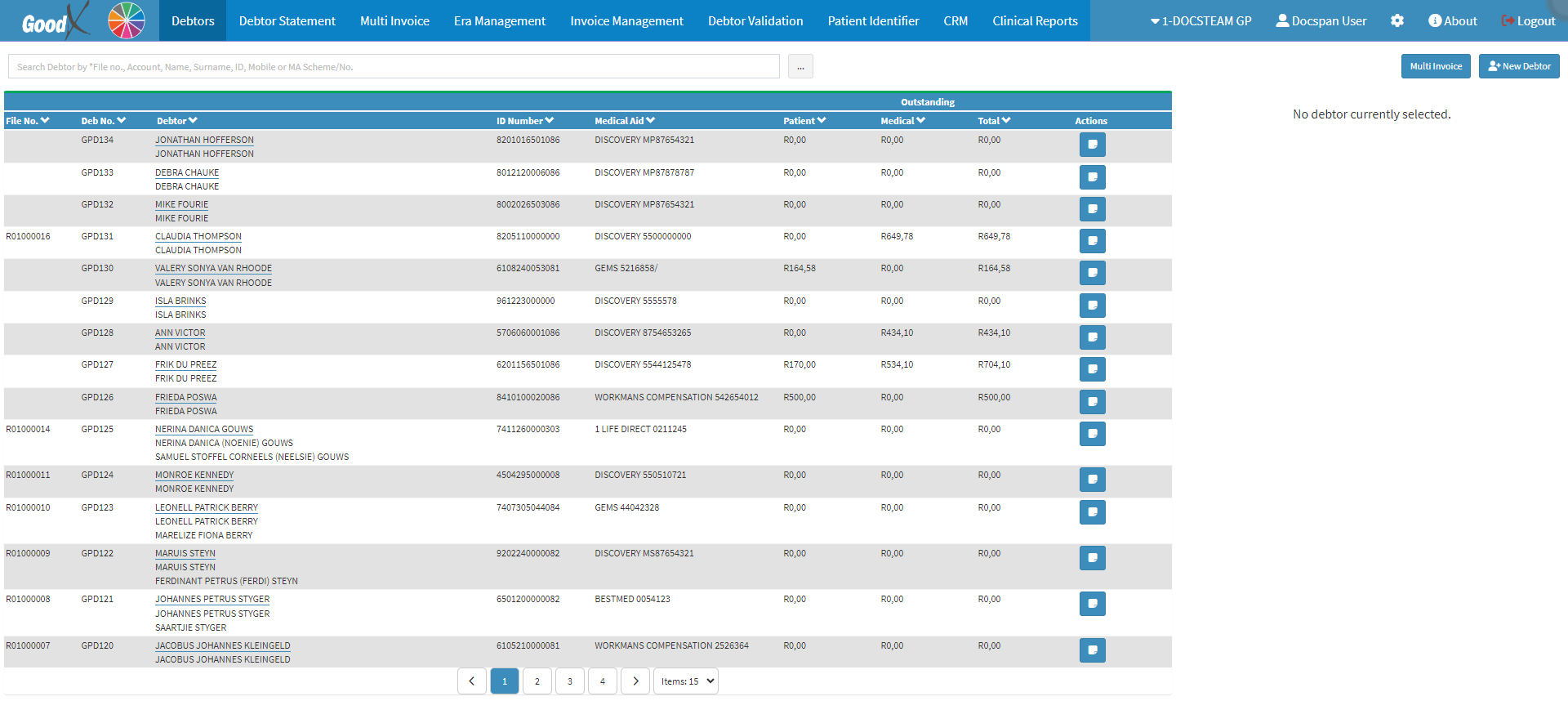 - For more information regarding the Debtors screen, please refer to the user manual: Debtor List.