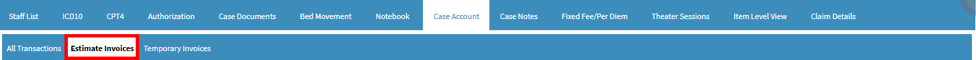 - For a more in-depth explanation of the Estimate Invoices screen, please refer to the user manual: Case Account - Estimate Invoices.