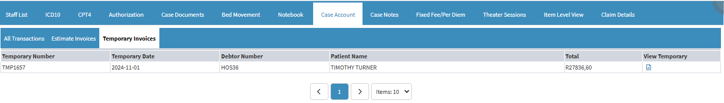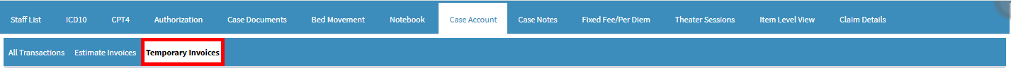 - For more information regarding Temporary Invoices, please refer to the user manual: Case Account - Temporary Invoices.
